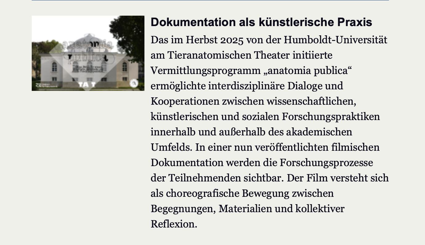 Accompanying the program anatomia publica last autumn in the Tieranatomischen Theater in Berlin, I produced an artistic documentation on four projects happening in this historical building.